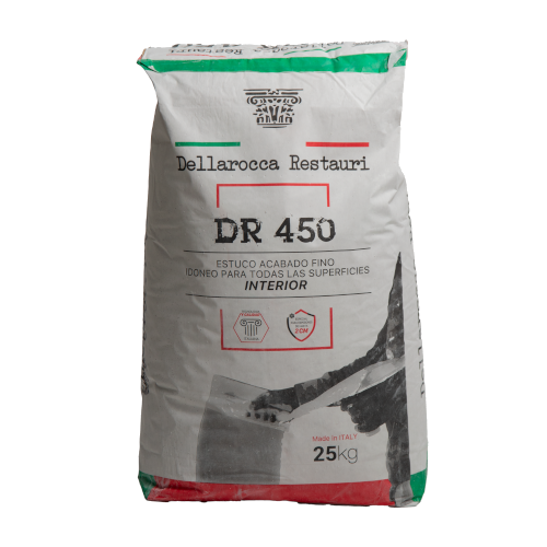 DELLAROCCA - DR 450 INTERIOR es un estuco en polvo cuya composición incluye polvo de mármol, yeso,