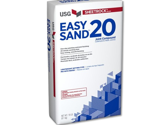 USG EasySand es un compuesto de fraguado químico para interiores de paneles de yeso y cielos rasos exteriores. Pesa hasta un 25% menos que los compuestos de juntas de peso convencional, lo que facilita su manipulación y lijado para un acabado rápido y suave. Es ideal para rellenos pesados y es prácticamente inafectado por la humedad extrema.